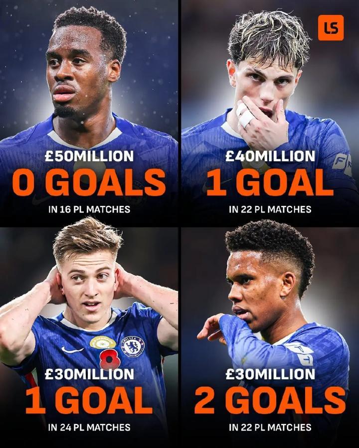 扫描下载懂球帝首页>动态> 切尔西去年夏窗四前锋到队,总转会费1.5亿但在英超一共只进4球