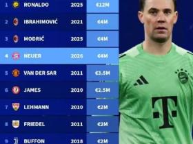 德转列史上40+岁球员身价榜:C罗1200万欧断层领先,伊布次席