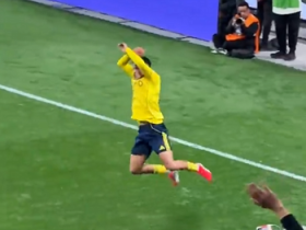 C罗缺战,队友安热洛在进球后做出了Siuuu的庆祝动作