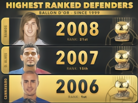 99年以来历届金球奖后卫最高排名:卡纳瓦罗06年第1