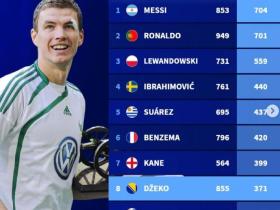 371球,哲科位居本世纪欧洲前10联赛俱乐部射手榜第8位