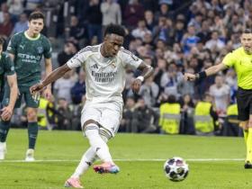 14罚丢4球,维尼修斯成21世纪皇马主罚10次以上的最差点球手