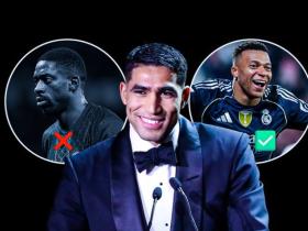 阿什拉夫FIFA年度最佳男足球员投票:姆巴佩第一,登贝莱第二