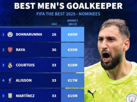 FIFA年度最佳门将提名者身价榜:多纳鲁马第1,3C90万最低