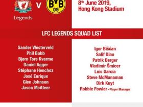 利物浦公布和多特蒙德传奇赛名单:库伊特、罗比-福勒入选