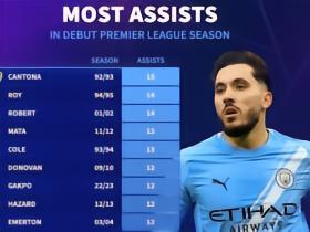 英超处子赛季助攻榜:坎通纳15次居首,谢尔基10次暂列第17