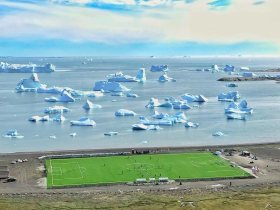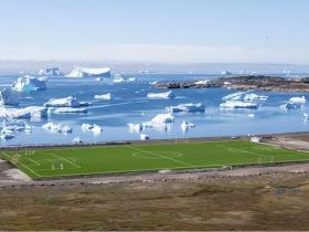 在球场上瞥见冰山,格陵兰岛的足球之火正在燃烧