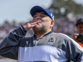 人气高,马拉多纳在阿超赛场执教时被对手前锋拥抱