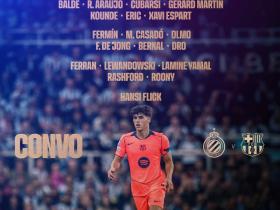 巴萨战布鲁日大名单:莱万领衔,亚马尔在列,克里斯滕森缺席