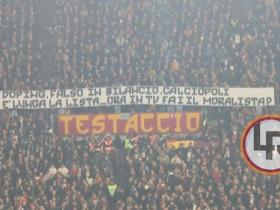罗马球迷横幅嘲讽尤文:兴奋剂、财务造假、电话门,现在你开始装好人