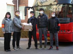 感谢无微不至的照顾,郎征代表河北队向大同驻地物业赠口罩