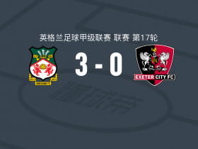 雷克瑟姆3-0大胜埃克塞特城,拉思伯恩、奥利-帕尔默破门