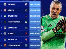 本赛季欧冠最年长出场球员前10:诺伊尔、阿切尔比、莱万上榜