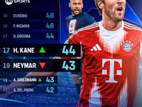 凯恩欧冠进球数超越巴西传奇内马尔升至历史第17位