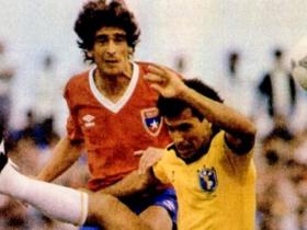 1986年一场友谊赛,智利队后卫佩莱格里尼防守巴...