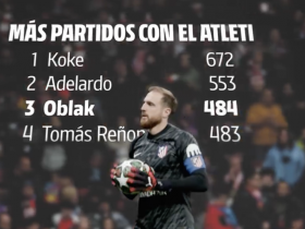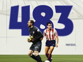 483场,奥布拉克升至马竞队史出场榜并列第三