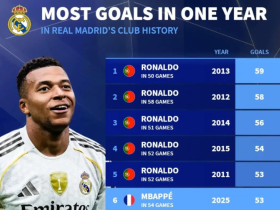 皇马队史自然年进球榜TOP10:C罗6次上榜包揽前5,姆巴佩第6