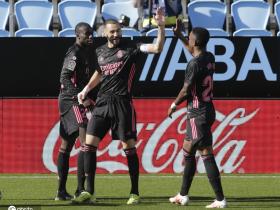 186球,本泽马成为皇马队史第四联赛射手,第一是C罗的312球