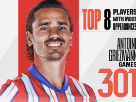 301场,格列兹曼升至马竞队史西甲出场榜第八