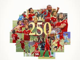 萨拉赫达成利物浦生涯250球里程碑,成队史第三人