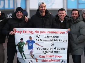 奥地利门将来看哈兰德比赛,他曾被哈兰德单场打进四球