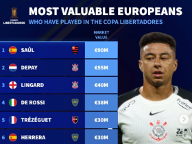 解放者杯参赛欧洲球员德转历史身价榜:萨乌尔第1,林加德在列