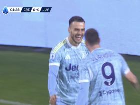 开场2分钟闪击,科斯蒂奇当选克雷莫内塞vs尤文全场最佳