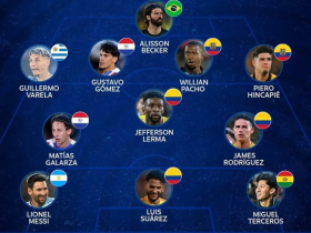 南美区世预赛最后两轮最佳阵容:梅西领衔,哥伦比亚三人入选