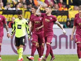 奥格斯堡3-0十人门兴,克劳德-毛里斯帽子戏法,奥姆林染红