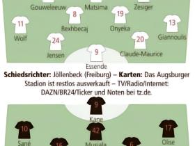 德媒预测拜仁客战奥格斯堡首发:帕利尼亚、金玟哉在列
