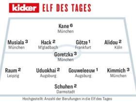 踢球者评德甲本轮最佳:凯恩领衔拜仁4人入选,格策上榜