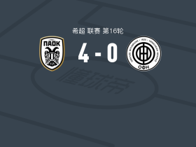 塞萨洛尼基5-0血洗OFI克里特,萨马塔两球,施瓦布点射破门