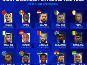 德转列非洲各国球员历史最高身价:萨拉赫、马内1.5亿欧第1