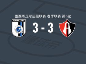 克雷塔罗3-3瓜达拉哈拉阿特拉斯,德尔普雷特打破僵局,卢卡斯-罗德里格斯救主