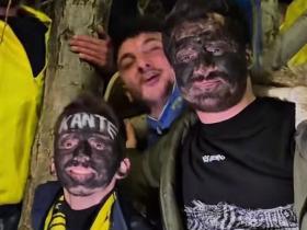 抽象,两名费内巴切球迷欢迎坎特的时候把脸涂成了黑色