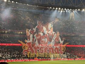 多位枪手传奇在列,阿森纳对热刺的北伦敦德比赛前打出巨幅Tifo