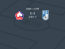 90分钟战报:里尔1-1战平敦刻尔克,双方进入点球大战