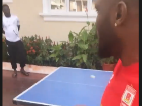 阿隆晒出他看好友打乒乓球的视频,身上的亚泰球衣格外显眼