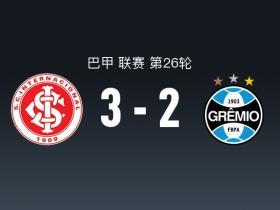 巴西国际vs格雷米奥球员评分:帕特里克8.1分,罗切特5.3分