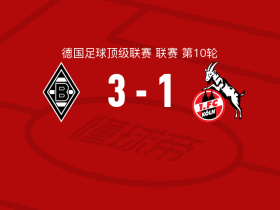 门兴格拉德巴赫3-1科隆,凯文-迪克斯点射破门,哈里斯-塔巴科维奇1射1传