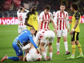 在对阵多特时科隆球员许伯斯右膝重伤,预计将伤缺数月