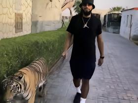 中东生活:前比利时国脚德纳伊尔晒出自己溜老虎的照片