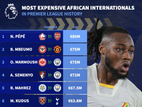 非洲球员转会费榜:尼古拉-佩佩居首,库杜斯6380万欧列第六