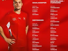 瑞士本期大名单:扎卡领衔,阿坎吉、科贝尔、巴尔加斯、恩多耶在列
