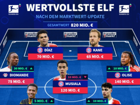 德甲无拜仁球员最贵阵容:阿德耶米、施蒂勒、施洛特贝克在列