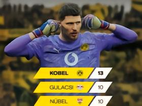 本赛季德甲门将零封榜:科贝尔13场居首,诺伊尔7场排第五