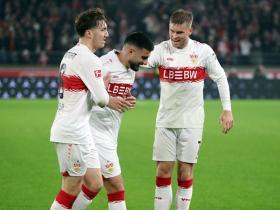 斯图加特5-2大胜奥格斯堡,昂达夫梅开二度,德米罗维奇建功
