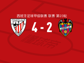 毕尔巴鄂竞技4-2莱万特,古鲁泽塔双响,罗伯特-纳瓦罗建功
