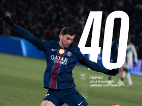法比安巴黎生涯参与40球,加盟巴黎至今助攻数队内中场第一