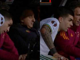 对直红判罚不满,詹卢卡-曼奇尼下场后跑到替补席查看录像